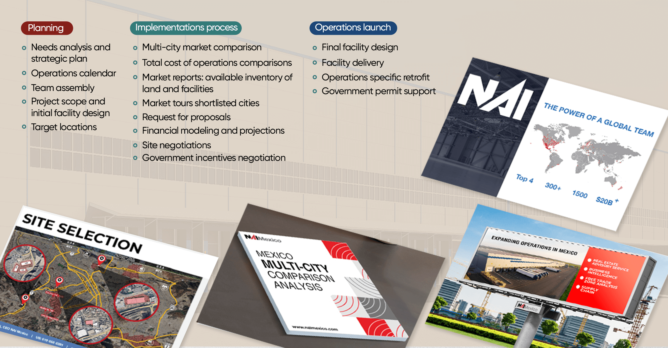 NAI Mexico provides planning, implementation, and operations launch tools uniquely integrating all phases into each clients process.